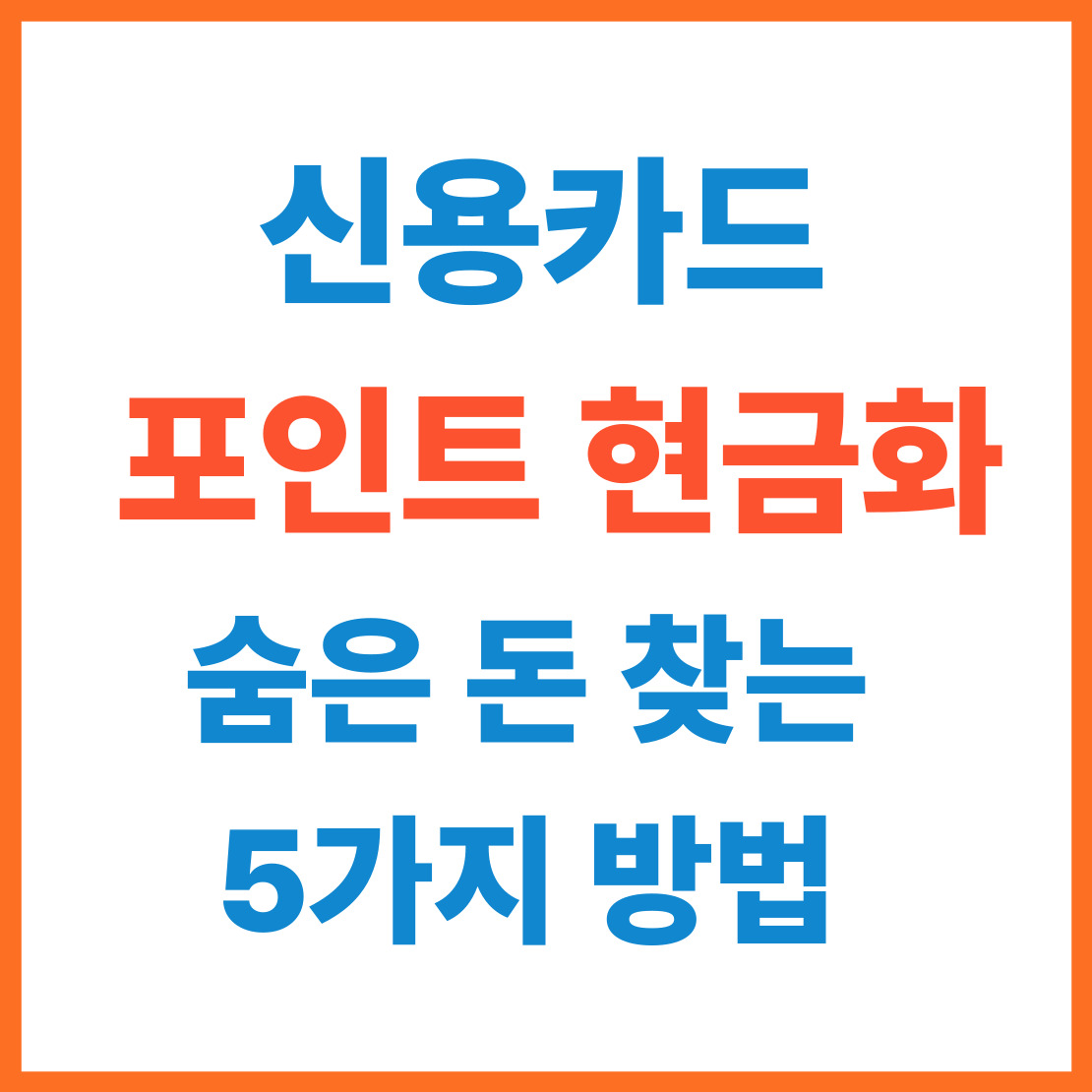 - 방법: 여신금융협회 통합 포인트 조회 시스템에 접속 후, 본인 인증을 하고 내 카드 포인트를 모두 조회합니다. '현금화' 버튼을 누르고, 입금받을 계좌를 입력하면 끝!